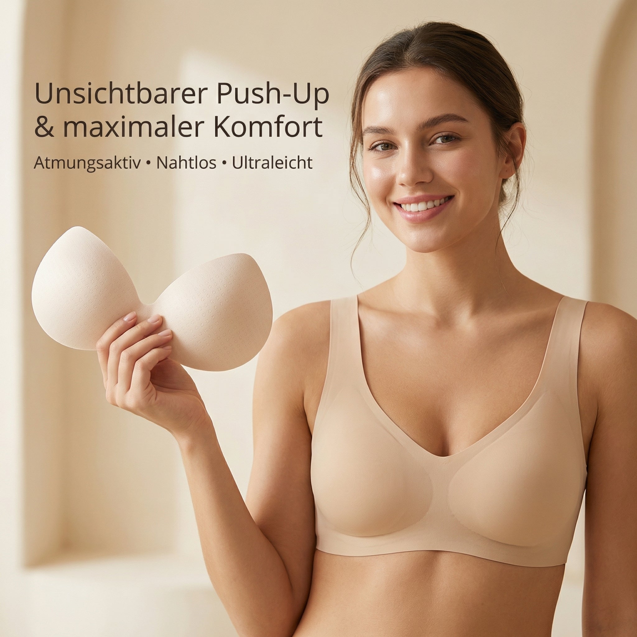 Erlebe atmungsaktive, nahtlose und ultraleichte Pads, die deine Brust sanft formen und unter jedem Outfit unsichtbar bleiben. Für natürlichen Halt, angenehmen Tragekomfort und ein rundum sicheres Gefühl – den ganzen Tag.